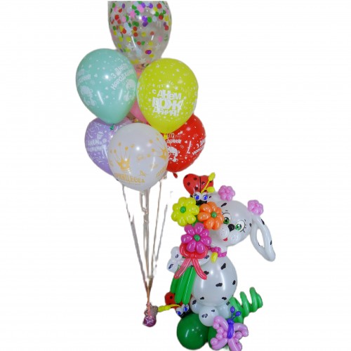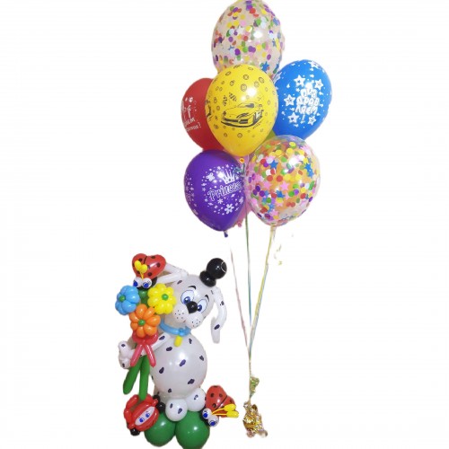 Букет з кульок "Собачка" для хлопчикаЦя яскрава композиція з повітряних кульок стане чудовим подарун..