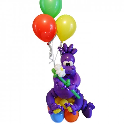 Динозавр з кульок з букетом геліївих кульок — чудова композиція для святкування дитячого Дня народже..