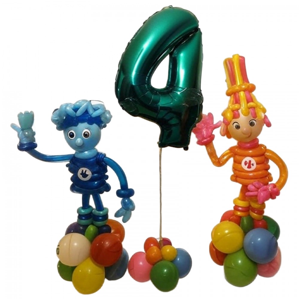 Композиція гелієвих кульок "Цифра чотири" в стилі мультфільму "Фіксики"Опис:Ця стильна композиція з ..
