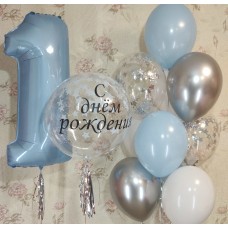 - Модель: Композиция фонтан гелиевых шаров и фольгированная цифра