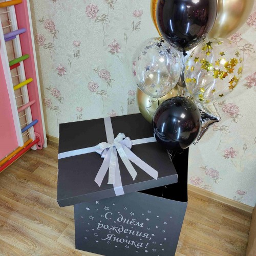Коробка-сюрприз з гелієвими кульками — це ідеальний подарунок для будь-якої важливої події: день народження, День закоханих, чи будь-яке інше свято. Стильна коробка з кульками всередині подарує не лише радість, а й святкову атмосферу.