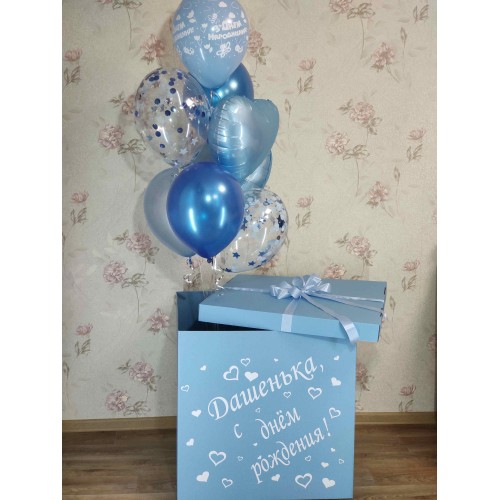 Коробка-сюрприз з гелієвими кульками та наклейкою – ідеальний подарунок для свята!