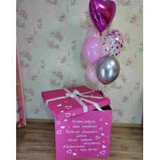 Мітки: коробка сюрприз рожева, коробка з кульками рожева, кульки для коробки сюрприз, рожеві кульки для свята, подарунок в рожевій коробці, святкові кульки рожева коробка, кульки для подарунка в коробці,
