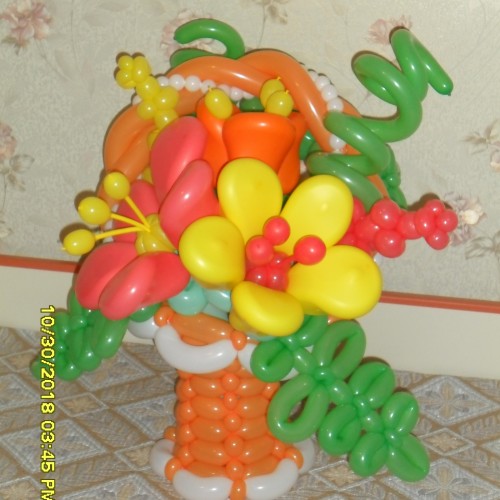 - Корзинки та букети з шарів проходять проклейку, зберігаючи форму більше ніж місяць.