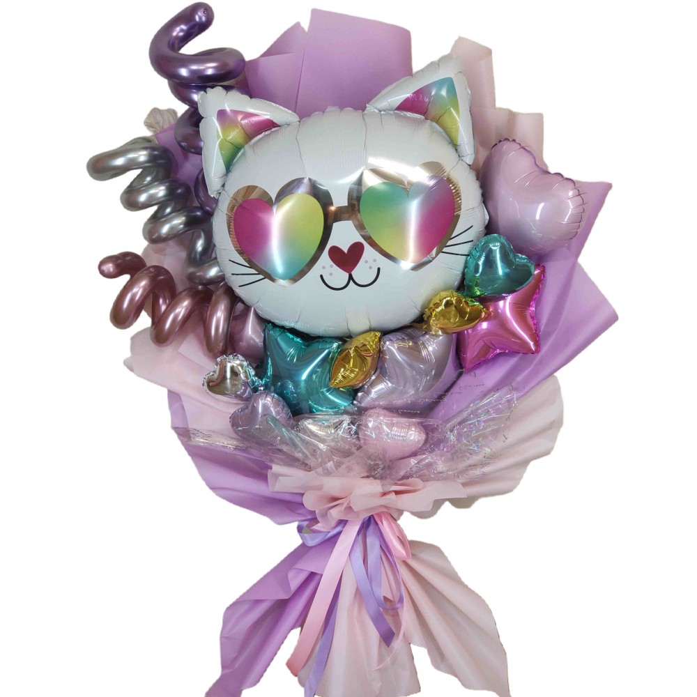Букет з кульок "Котик" Подаруйте неповторні емоції з нашим авторським букетом "Котик"! Цей яскравий..
