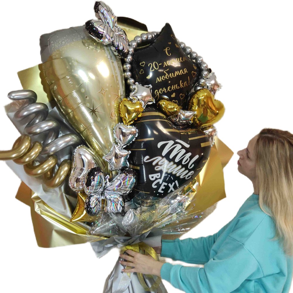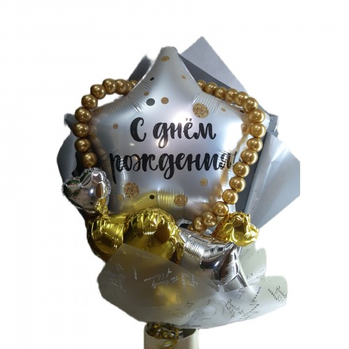 Букет із шарів "Срібло" Відкрийте для себе елегантність з нашим крафтовим букетом із шарів "Срібло"..