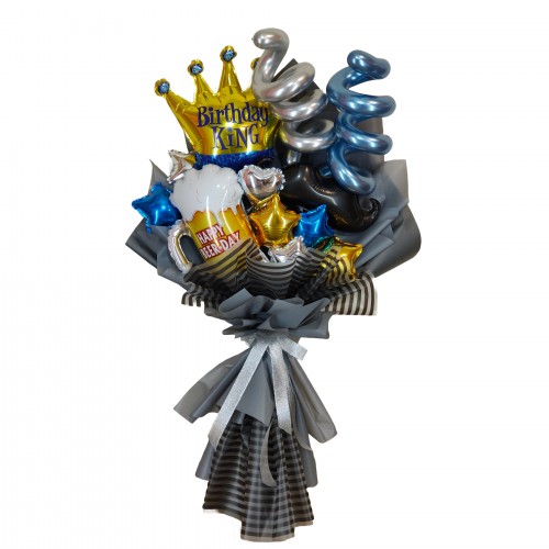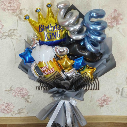Подаруйте оригінальний та стильний крафтовий букет з шарів для чоловіка! Цей букет з фольгованих кульок, наповнених повітрям, стане чудовим подарунком для будь-якого святкування, додаючи емоцій та святкового настрою.