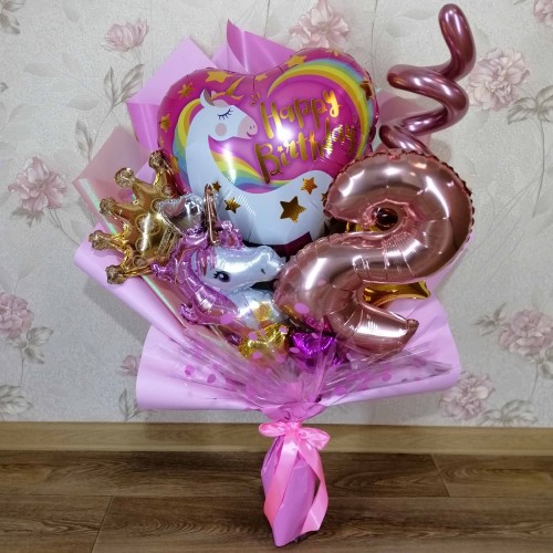 Крафтовий букет з кульок "Єдиноріг з цифрою"
