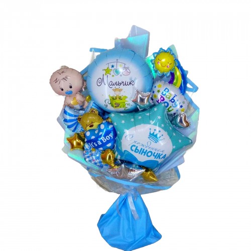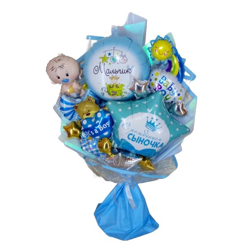 Зустрічайте нове життя з нашим крафтовим букетом куль для виписки! Ця яскрава композиція з фольгованих кульок створена спеціально для хлопчика, щоб зробити цей момент ще більш особливим і незабутнім. Ідеально підходить для виписки з пологового або як подарунок на виписку з пологового будинку для молодої мами.