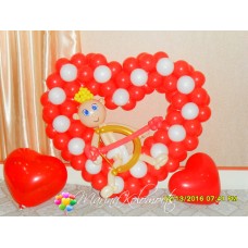 Мітки: Купідончик і серце, купідон з кульок, серце з кульок, композиція з кульок Купідон, романтичний декор з кульок, святковий декор купідон з серцем, повітряне серце,