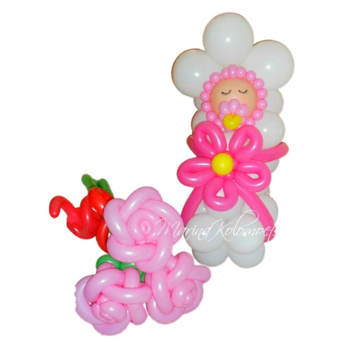 - Фігура Немовля з кульок – довжина 60 см, ширина 25 см, оформлена елегантним бантом.