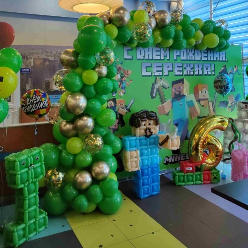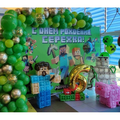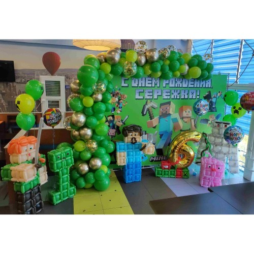 Не втрачайте можливість створити незабутню атмосферу для свого свята за допомогою Minecraft кульок з повітряних кульок. Замовляйте фотозону для дня народження, тематичної вечірки чи випускного у нашому інтернет-магазині!