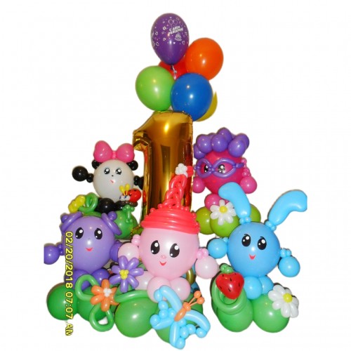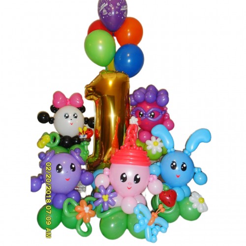 Ця яскрава композиція з кульок у стилі "Малишарики" стане чудовим акцентом на дитячому святі, створюючи незабутню атмосферу радості! Вона ідеально підходить для дня народження і принесе безліч позитивних емоцій для дітей і дорослих.