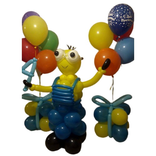 Міньйон з повітряних кульок (Minion of Balloons) — це яскрава і весела композиція для святкового привітання з Днем народження або іншими урочистими подіями. Ідеально підходить для оформлення дитячих свят і додає позитивних емоцій на будь-якому заході.