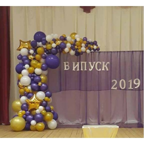Ця композиція з різнокаліберної гірлянди з повітряних кульок ідеально підходить для оформлення будь-якого святкування, додаючи кольору, яскравості та святковості вашій події. Використання латексних кульок різних кольорів та розмірів створить неповторну атмосферу і стане чудовою прикрасою для вашого заходу.
