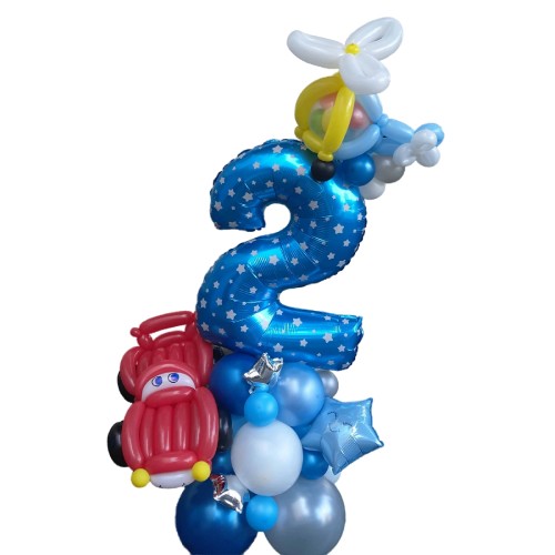 Ця чудова композиція з кульок стане ідеальним подарунком для хлопчика на його другий день народження. Вона приверне увагу і подарує безліч радісних моментів, створюючи неповторну атмосферу свята!