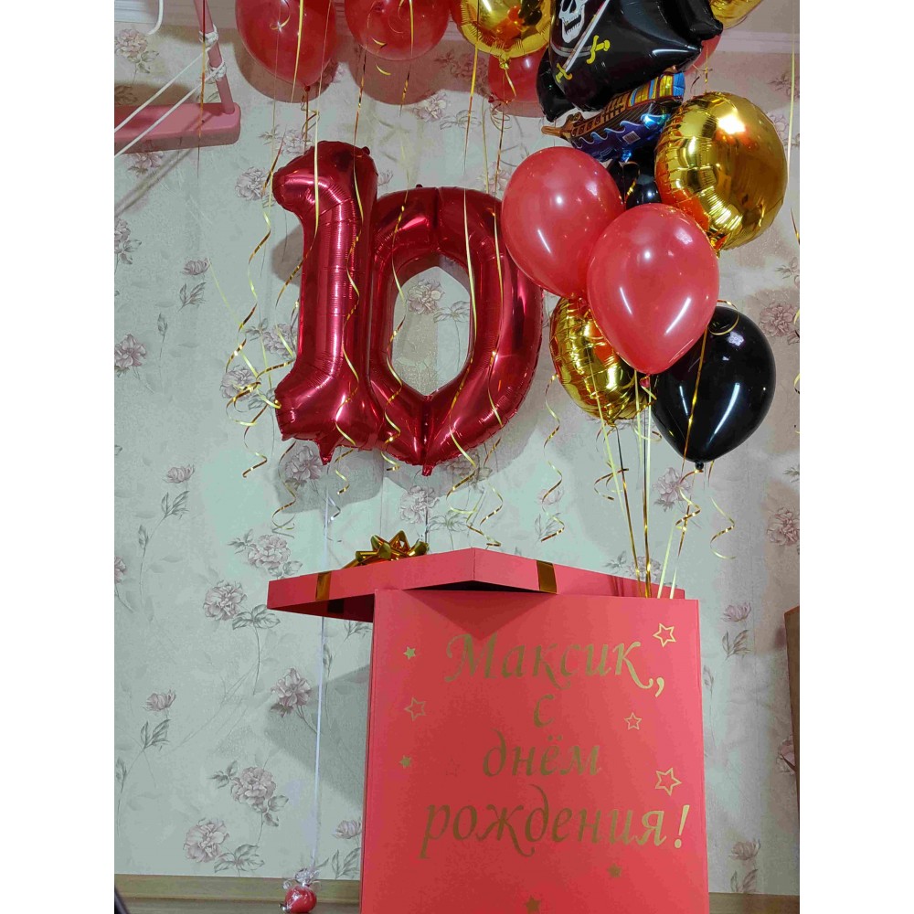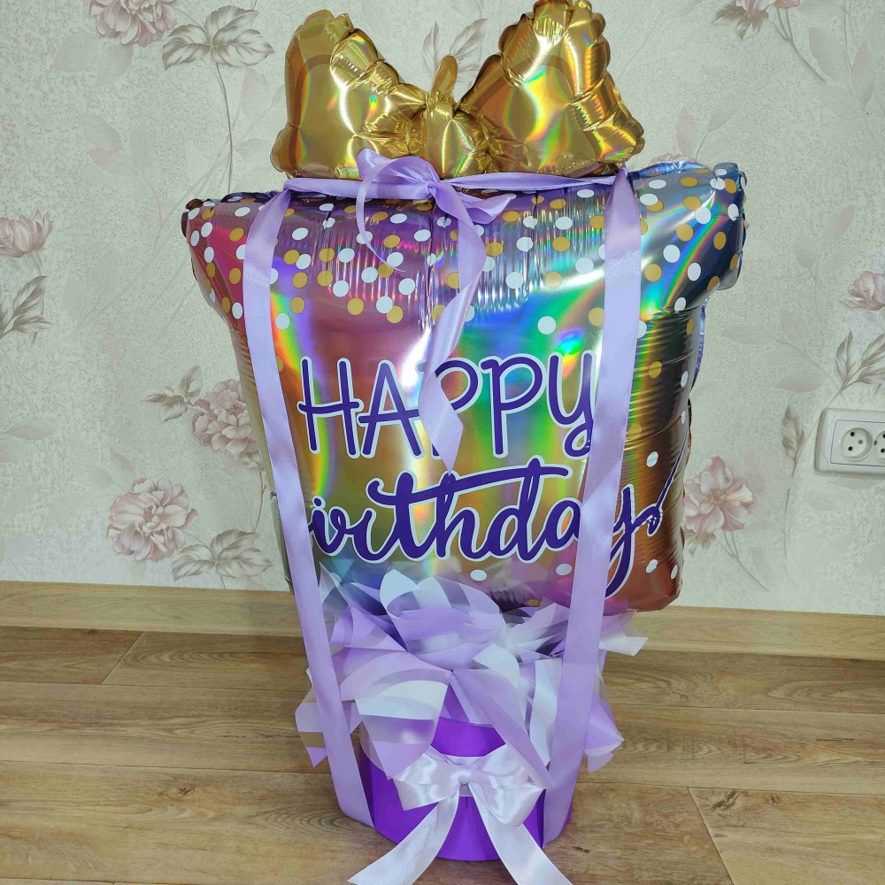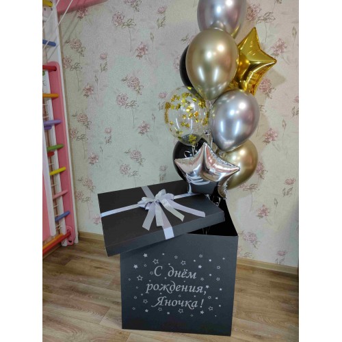 Коробка-сюрприз з гелієвими кульками та наклейкою – ідеальний подарунок для свята!Ця коробка-сюрприз..