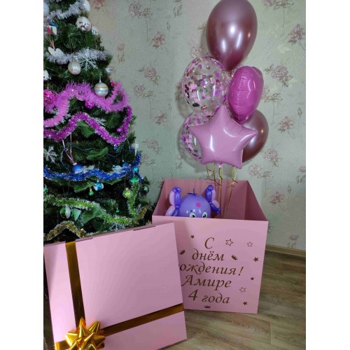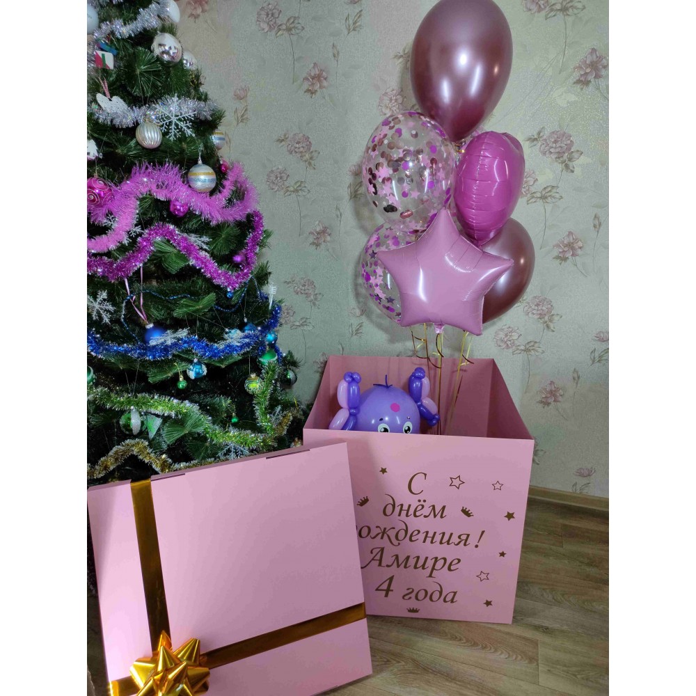 Коробка рожевий сюрпризКоробка-сюрприз для привітання зі святом гелієвими кульками — ідеальний спосі..