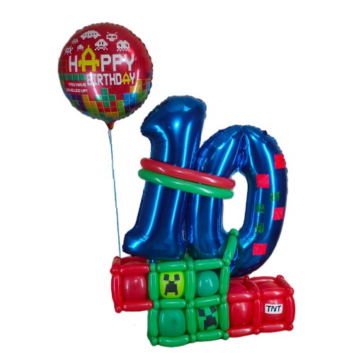 - Цифра 10 з кульок Minecraft, висота — 100 см, ширина — 100 см