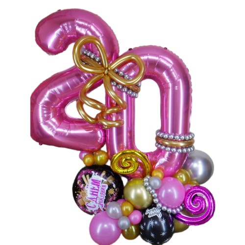 Ця яскрава композиція з цифри "Двадцять" стане чудовим акцентом на будь-якому святі, додаючи стиль і елегантність. Ідеально підходить для Дня народження, ювілею, або будь-якого іншого важливого заходу.
