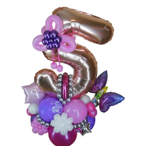 Цифра із кульок П'ятірка — зробіть п'яте день народження вашої дитини яскравим і незабутнім з цією чудовою композицією! Ідеально підходить для святкування, цей декор стане справжнім центром уваги на вашому святі.