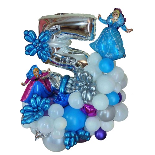 Цифра з кульок Ельза та Анна — створіть справжню казку на день народження вашої дитини з цією чарівною композицією, натхненною популярними персонажами мультфільму "Холодне серце"! Ідеально підходить для святкування п'яти років і стане чудовим акцентом на святі.