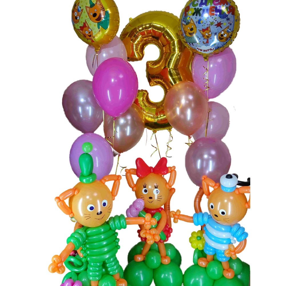 Герої "Три кота" з повітряних кульокЦя стильна композиція в стилі мультфільму "Три кота" стане яскра..