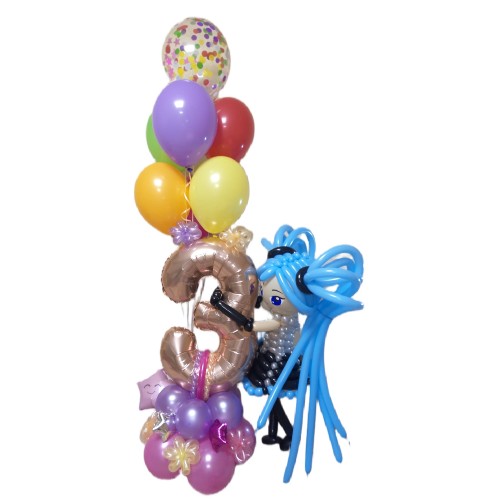 Букет гелієвих кульок з цифрою П'ятьЦя яскрава композиція створена для святкування дня народження та..