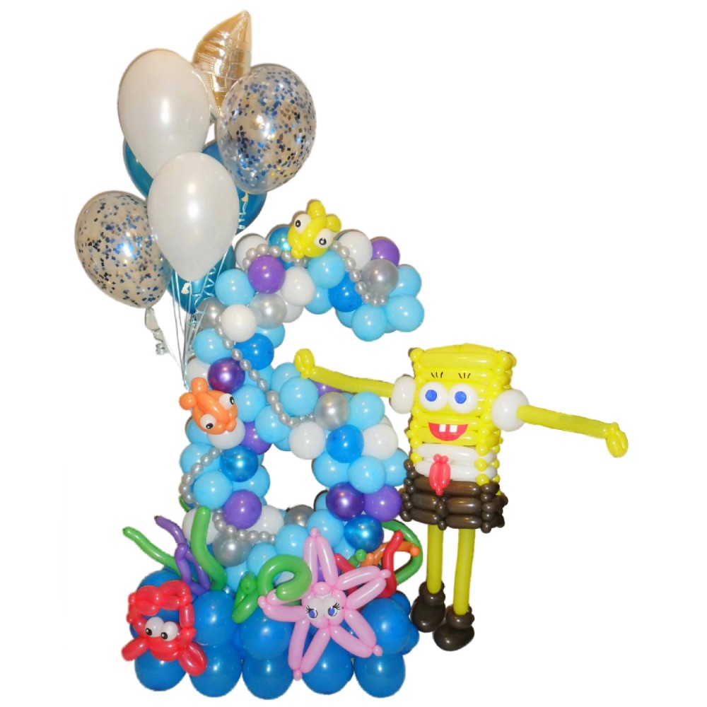 Губка Боб з шарів з цифрою 6 — ідеальна композиція для святкування Дня народження на Троєщині!Яскрав..