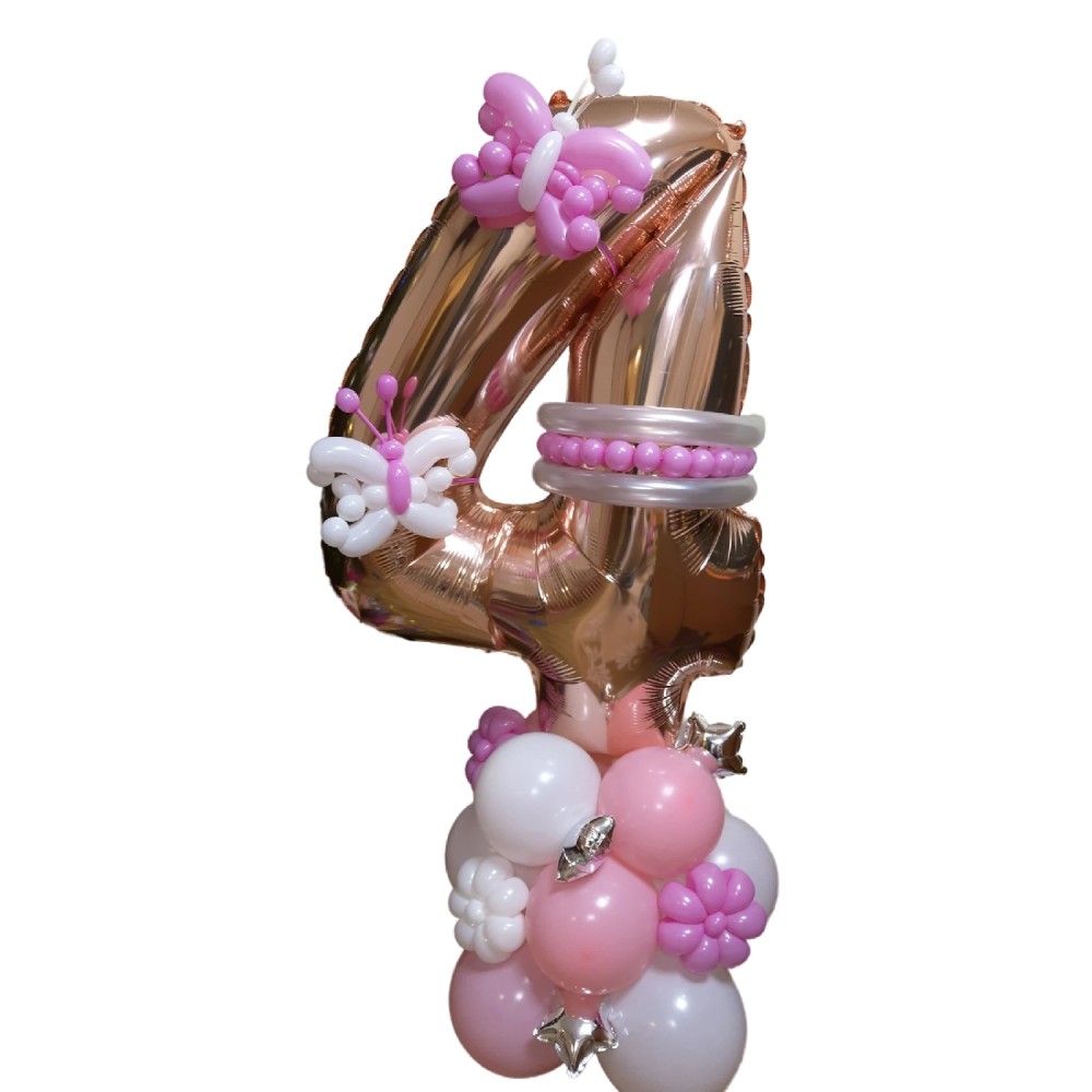 Цифра з кульок четвірка — яскравий акцент для вашого свята, який приверне увагу і створить атмосферу..