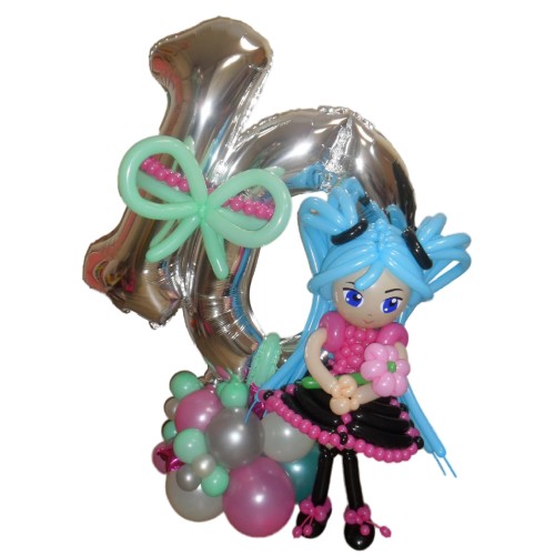 Цифра з кульок Хатсуне Міку (Hatsune Miku)Ця композиція для святкування Дня народження стане яскрави..
