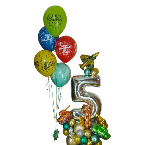 Цифра з кульок "П'ятірка" для хлопчикаЦя яскрава композиція з повітряних кульок створить незабутню а..