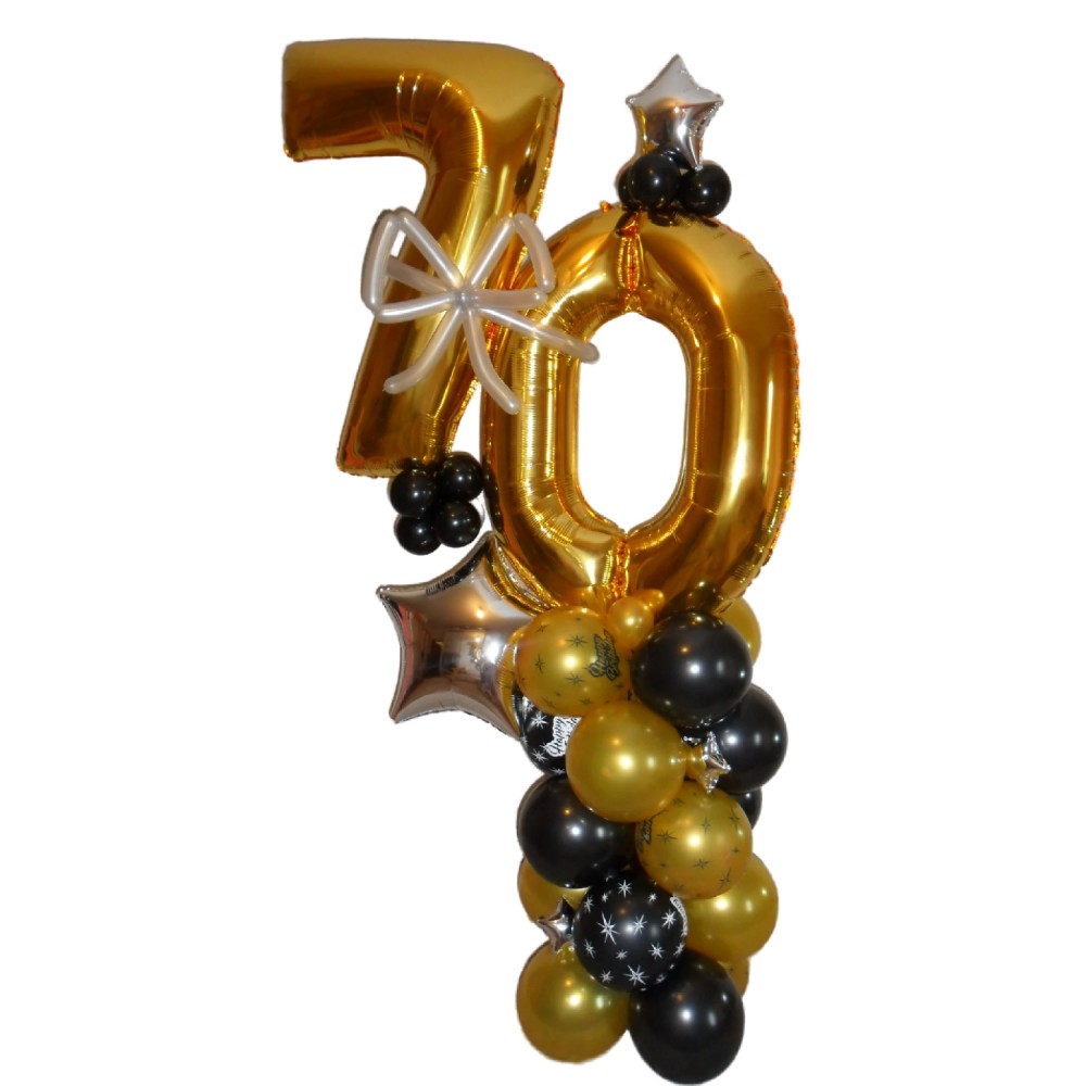 Цифра з кульок СімдесятЦя вишукана композиція з фольгованою цифрою "70" ідеально підходить для святк..