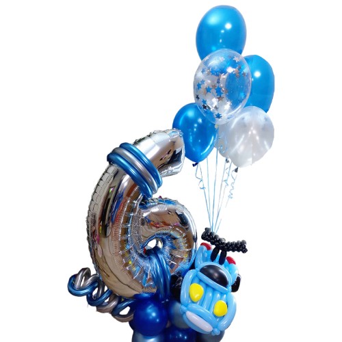 Цифра з кульок Шість для хлопчика з машинкою Опис:Ця композиція стане ідеальним вибором для святкув..