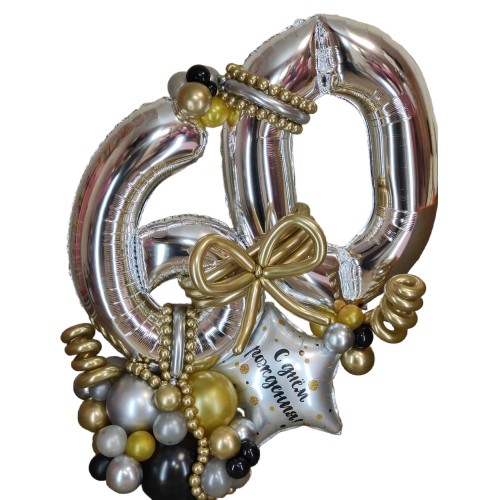 Цифра з кульок ШістдесятКомпозиція для святкування шістдесятиріччяОпис:Ця фольгована цифра 60 з куль..