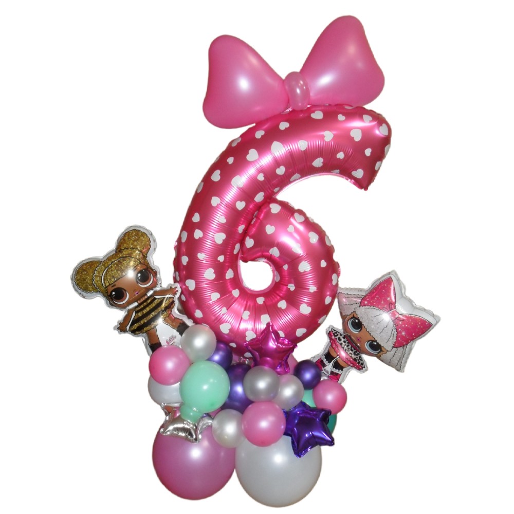 Цифра з кульок "Шістка" та ЛОЛ — стильний декор для святкуванняЦя чудова композиція з повітряних кул..