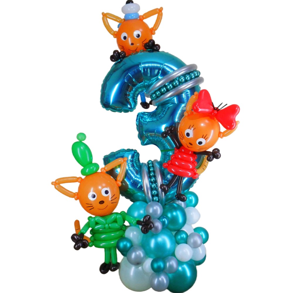 Цифра з кульок Три котиПривітайте малюка з Днем народження оригінальним та яскравим оформленням у ст..
