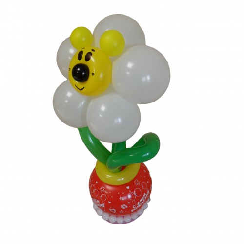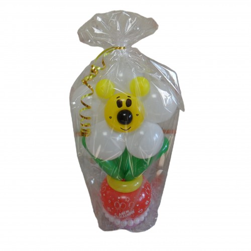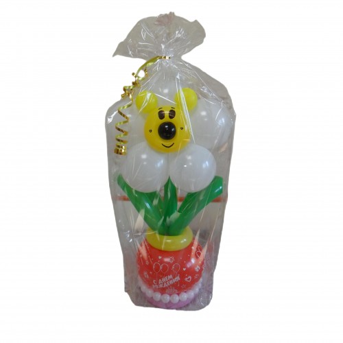 Ця чудова композиція з повітряних кульок стане яскравим доповненням до вашого свята! Букет складається з квітки, виконаної з латексних кульок для моделювання (КДМ), та вазона з мордочкою ведмедика, також виготовленого з кульок. Ви можете оформити цю композицію в упаковку, щоб додати ще більше емоцій та радості!