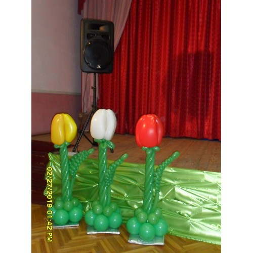 - 6 величезних тюльпанів з повітряних кульок (висота кожного тюльпану — 1,4 м)