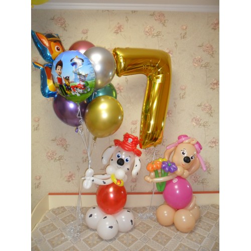 Ця барвиста композиція з повітряними кульками стане чудовим доповненням до святкування дня народження маленьких фанатів мультсеріалу "Щенячий патруль". Вона створить незабутню атмосферу свята, додавши яскравих кольорів та радісного настрою. Ідеально підходить для дитячих свят, використання гірлянд, фотозон або оформлення приміщень для важливої події.