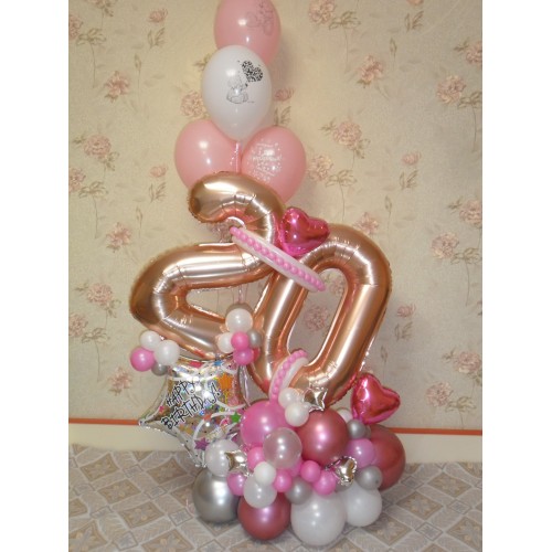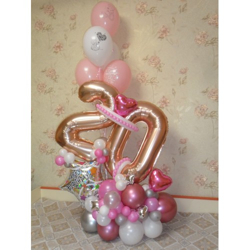 Ця чарівна композиція з повітряних кульок стане прекрасним доповненням до вашого свята, створюючи атмосферу радості та урочистості. Ідеально підходить для відзначення 20-річчя, днів народження, дитячих свят чи інших важливих заходів. Вона також буде чудовою окрасою для фотозон і фотосесій.