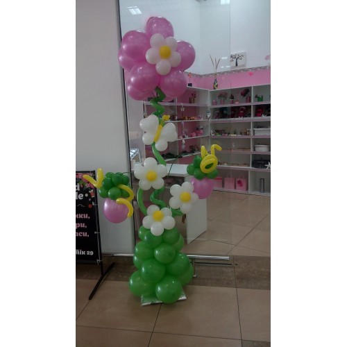 - Два величезних квітки з повітряних кульок, що додають кольору та емоцій вашому приміщенню.
