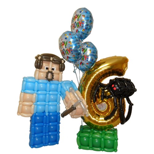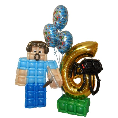 - Майнкрафт Стив з кульок — персонаж улюбленої гри, виконаний з повітряних кульок, який стане центром уваги на святі та обов'язково вразить малечу.