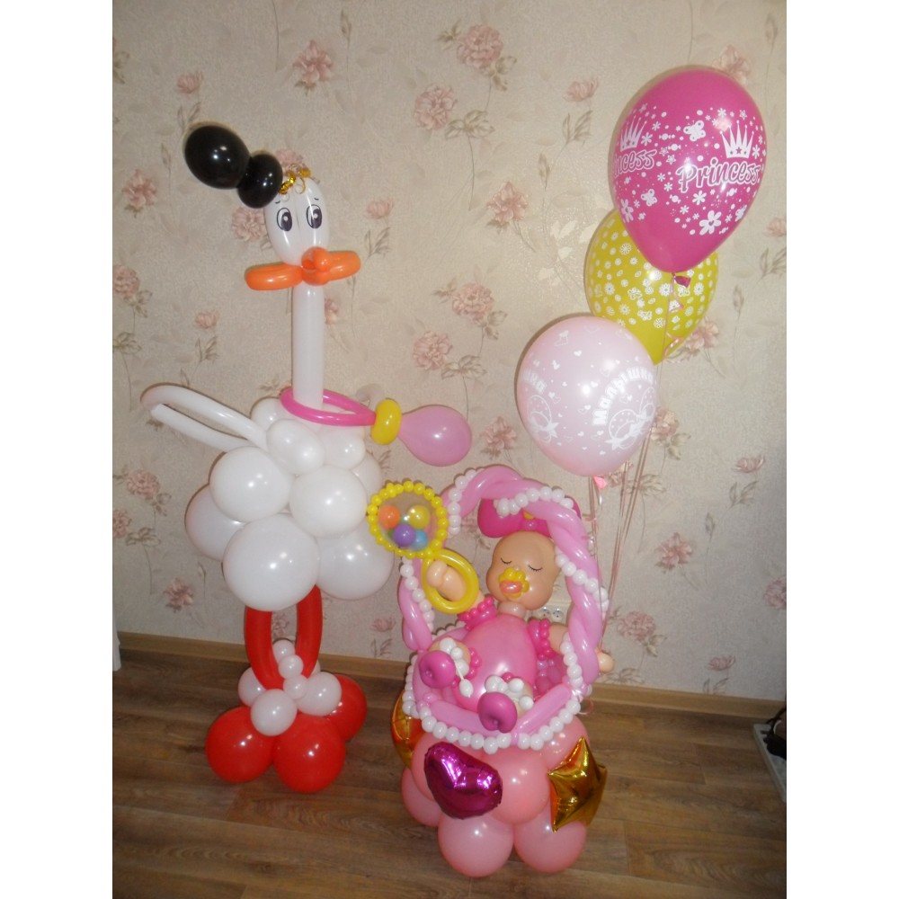 Лелека і Малюк з куль в Пологовий будинокКомпозиція для зустрічі з пологового будинку — це ідеальний..