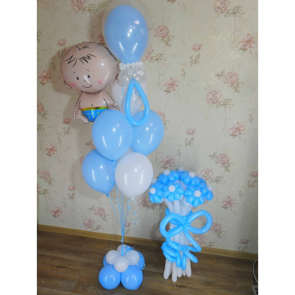 Малюк з букетом з кульокЦя чарівна композиція створена для зустрічі новонародженого з пологового ..