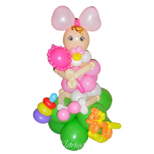 Лялька для зустрічі з пологового будинкуФігура дівчинки з кульок – ідеальний елемент декору для свят..