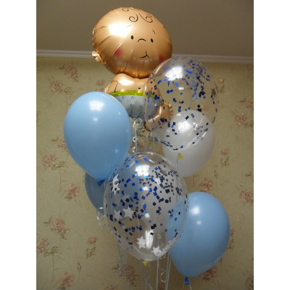 Гелієві кульки на виписку для хлопчика — святковий старт нового життя! Цей букет гелевих кульок ста..